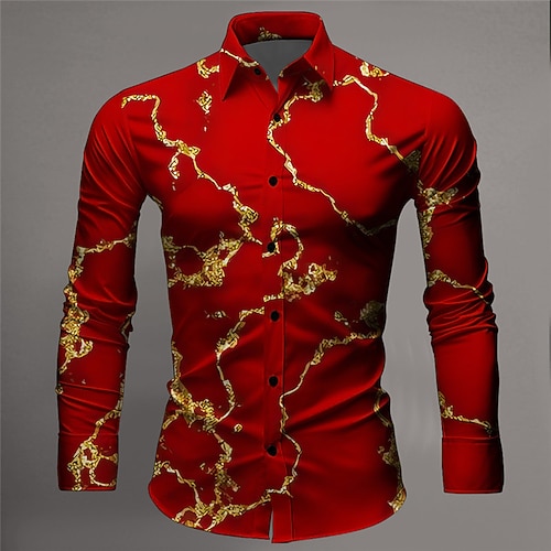 Per uomo Crepa Camicia Camicia con bottoni Manica lunga Astratto Da tutti i giorni Per uscire Primavera estate Collo ripiegabile Stampa Bottone giù Giallo Borgogna