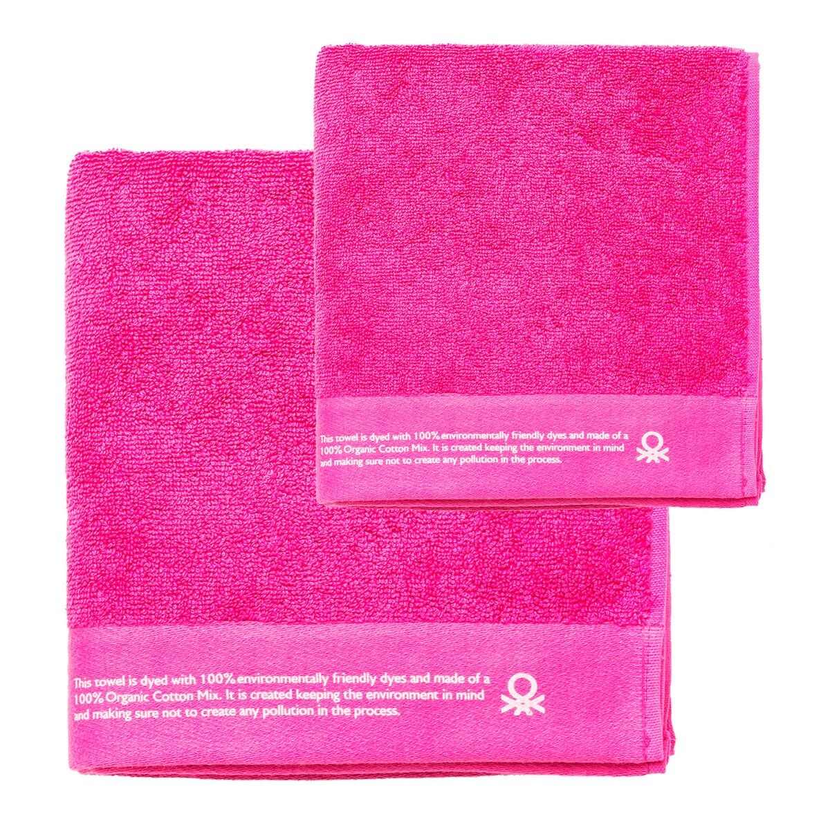 Benetton – Set mit 2 Handtüchern 50 x 90 cm + 70 x 140 cm, Bio-Baumwolle, 450 g/m², Rosa