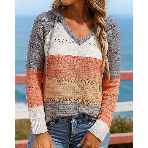 Per donna Felpa con cappuccio Felpa lavorata a maglia Coulisse Manica Lunga Top Athleisure Scollo a V Blocco di colori Di tendenza All'aperto Viaggio Sportivo abbigliamento sportivo Abbigliamento