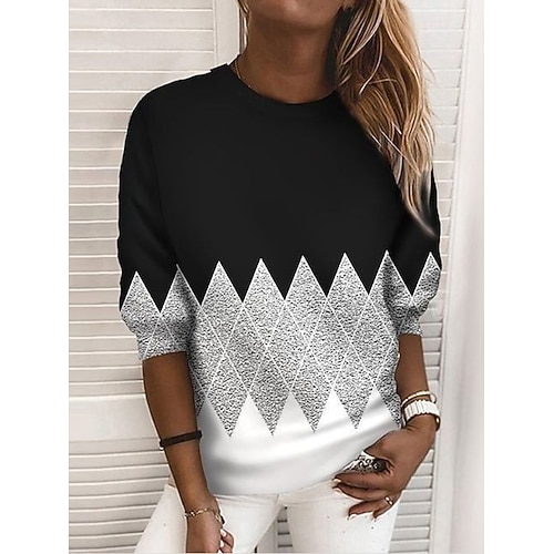 Per donna Felpa Pullover Grafico Geometrico Blocco di colori Moda Casual Manica Lunga Girocollo Top Regolari Casuale Streetwear Abbigliamento Quotidiano Stampato Nero Rosso Cachi Grigio Autunno