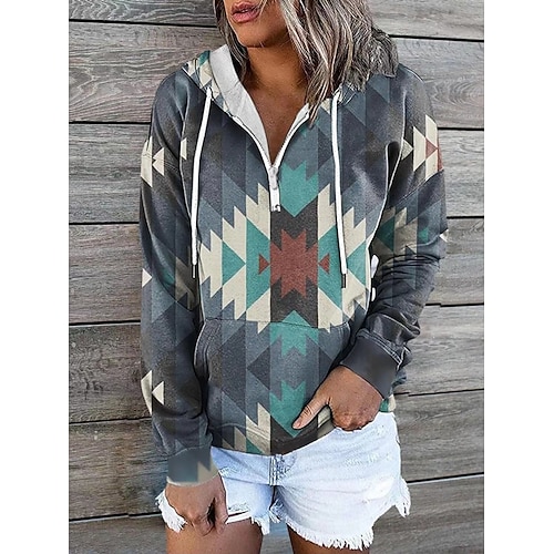Per donna Felpa con cappuccio Geometrico Blocco di colori Vintage Etnico Casual Manica Lunga Con Cappuccio Top Regolari Streetwear Abbigliamento Quotidiano Nero Blu Cachi Beige Autunno Inverno