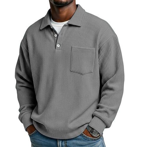 Per uomo Camicia di Velluto a Coste Polo Casuale Sportivo Bavero Manica Lunga Moda Essenziale Blocco di colori Bottoni Caldo Autunno Vestibilità regolare Nero Blu chiaro Rosso Verde Blu scuro Grigio