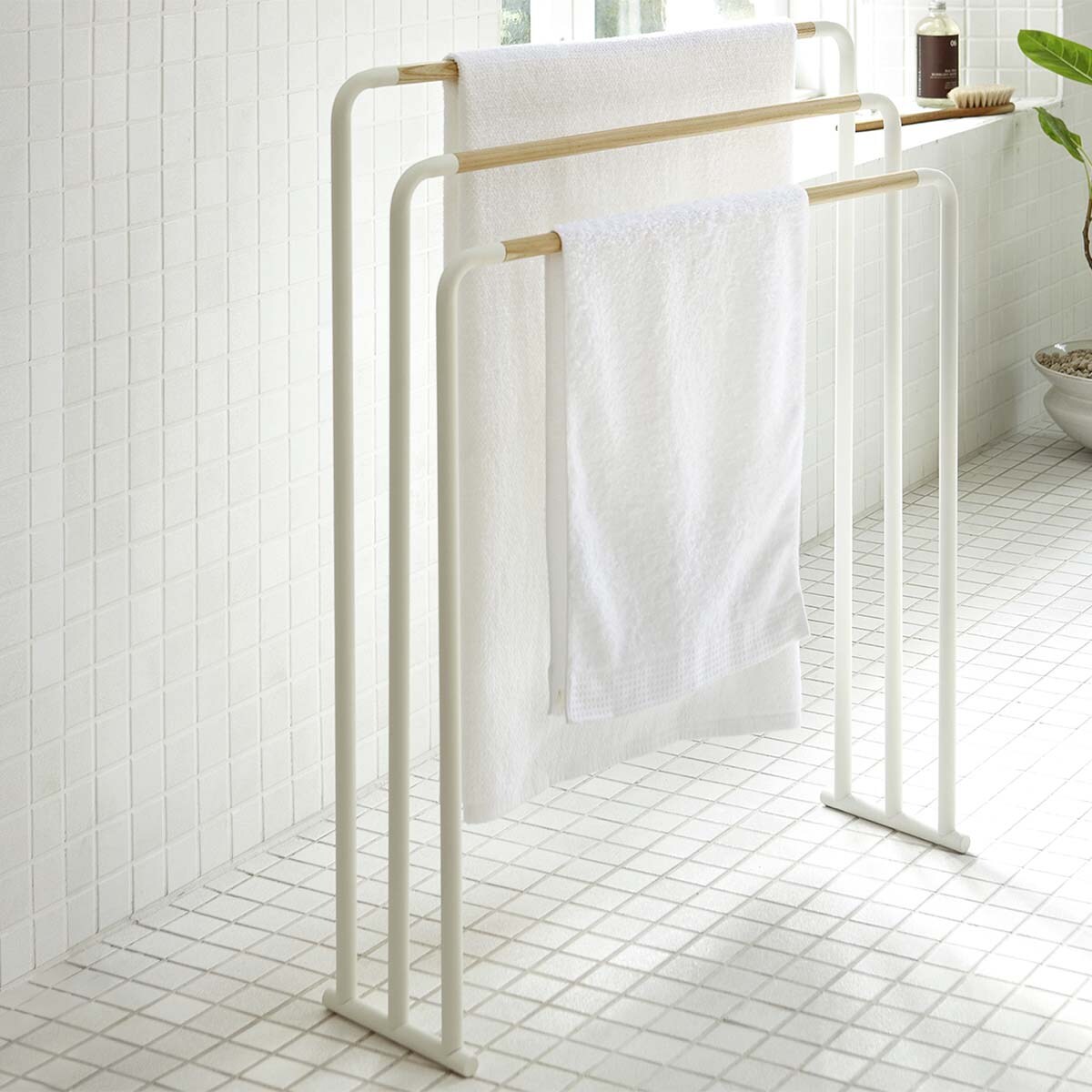 Yamazaki Home Handtuchhalter Handtuchständer freistehend Bad Metall weiß stehend 3 Reihen