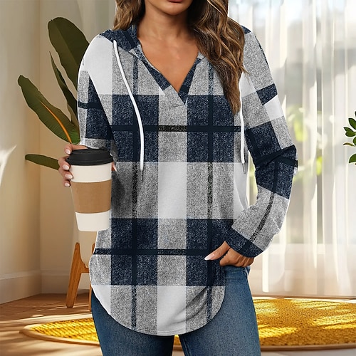 Per donna Camicia Boho Blusa Plaid Elegante Retrò Vintage Casual Manica Lunga Scollo a V Top Regolari Lavoro Quotidiano Ferie Coulisse Rosso Blu marino Verde Cachi Azzurro Primavera Autunno Inverno