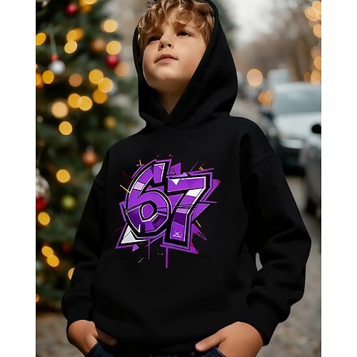 Unisex 3D Grafico Gergo divertente 67 Felpa con Cappuccio Maglione Manica Lunga Stampa 3D Primavera Autunno Sport Moda Streetwear Bambini 4-12 Anni Con cappuccio Casuale Quotidiano All'aperto