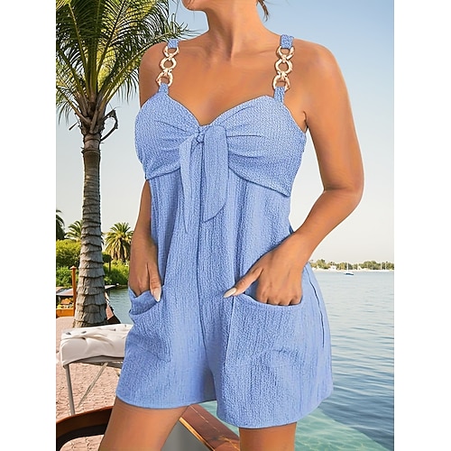 Per donna Normale Pagliaccetto Attivo Tinta unica Senza Maniche Scollo a V Tasca Fiocco Quotidiano Vacanza Vestibilità regolare Nero Blu marino Verde Estate