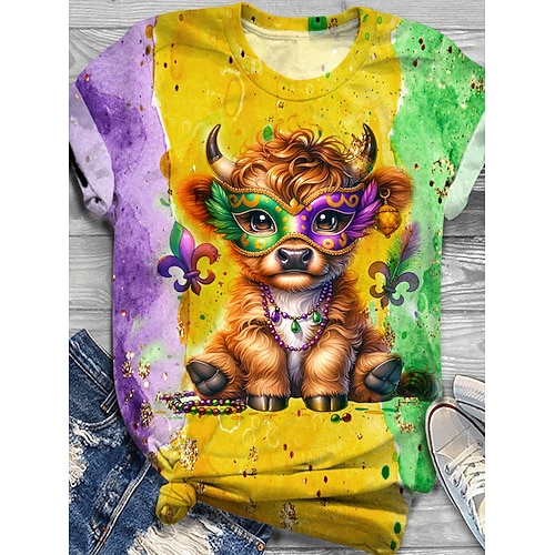 Carnevale Martedì grasso Per donna Maglietta Ombre Grafico Animale Vintage Elegante Casual Manica Corta Girocollo Top Regolari Quotidiano Stampato Giallo Viola Estate Primavera