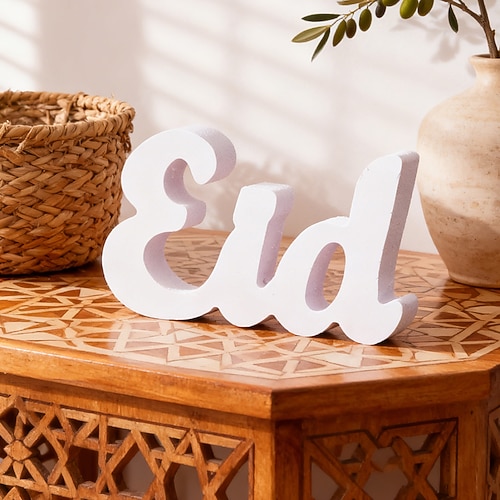 Ramadan Eid fiocco di neve bianco tavola Eid lettera decorazione per la casa ornamento perfetto per Ramadan e Eid al-Adha decorazione festiva idea regalo per la casa o l'ufficio celebrazione