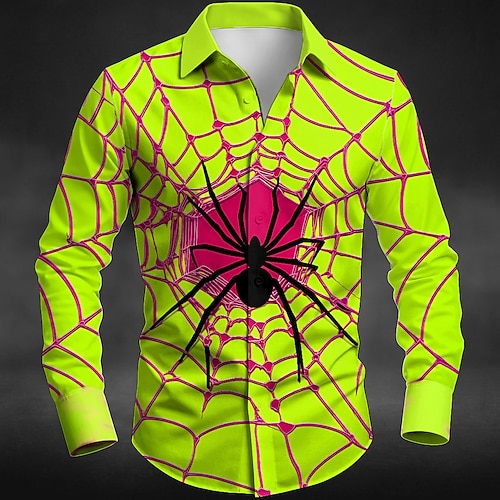 Camicia con ragnatela da uomo Button Up maniche lunghe stile gotico scuro all'aperto vacanza estate primavera colletto 3D stampa camicie arancioni verdi rosa rossa