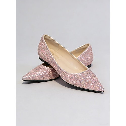 Per donna Scarpe da Sposa Taglie Forti Scarpe Scintillanti Scarpe da Sposa Glitter scintillante Tacco basso Punta a Punta Elegante PU Sintetici Mocassino Argento Rosa Champagne