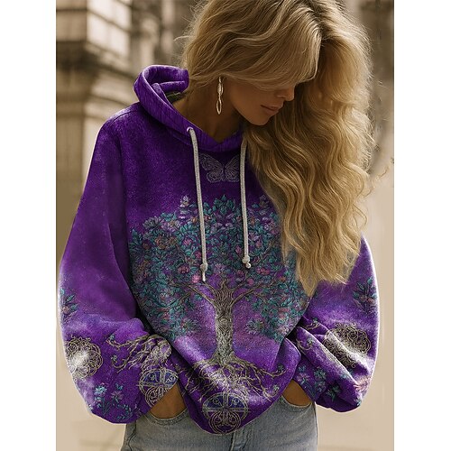 Per donna Felpa con cappuccio Floreale Grafico Elegante Caldo Attivo Manica Lunga Con Cappuccio Top Regolari Casuale Streetwear Abbigliamento Quotidiano Patchwork Stampato Blu Giallo Rosa Viola