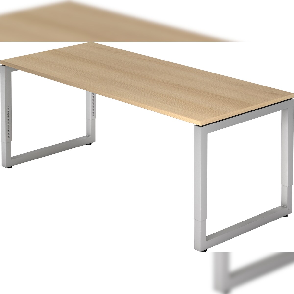 bümö höhenverstellbarer Schreibtisch R-Serie 180x80 cm in Eiche, Gestell in Silber - großer PC Tisch für's Büro manuell höhenverstellbar,