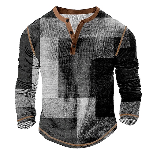 Per uomo Grafico Astratto Maglia Henley Maglietta Manica Lunga Vintage Moda Designer Casuale Quotidiano All'aperto Primavera Autunno Tutte le stagioni Grigio scuro Verde Blu scuro Viola Henley