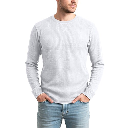 Per uomo Maglietta Waffle Maglietta Manica Lunga Girocollo Tutte le stagioni Tinta unica Tradizionale / Vintage Casual Puro All'aperto Casa Sport Outdoor Blu Nero Bianco Maglietta Top per Uomo