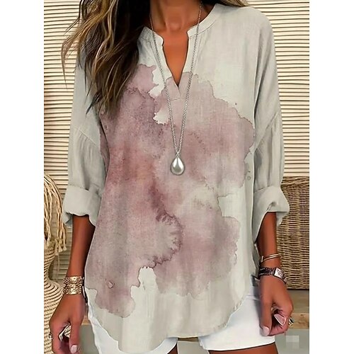 Per donna Camicia Tunica Grafico Vintage Quotidiano Elegante Manica Lunga Scollo a V Top Regolari Quotidiano Ferie Stampato Bianco Estate Primavera
