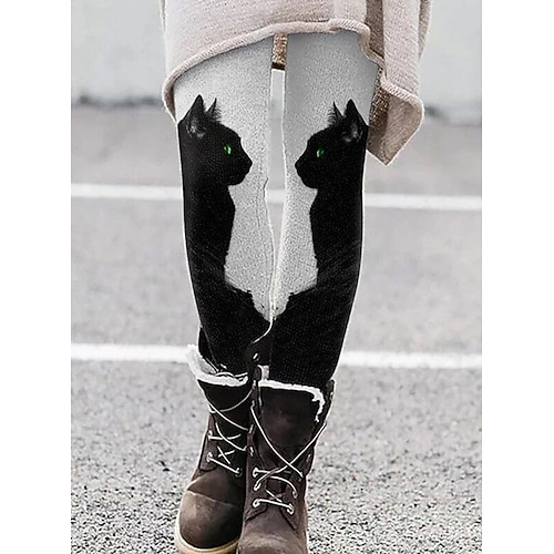 Per donna Leggings Vacanza Vintage Moda Lunghezza intera Vita Alta Grafico Gatto Stampa Calore Termico Morbido Traspirante Elasticizzato All'aperto Vacanza Streetwear Marrone scuro Grigio scuro