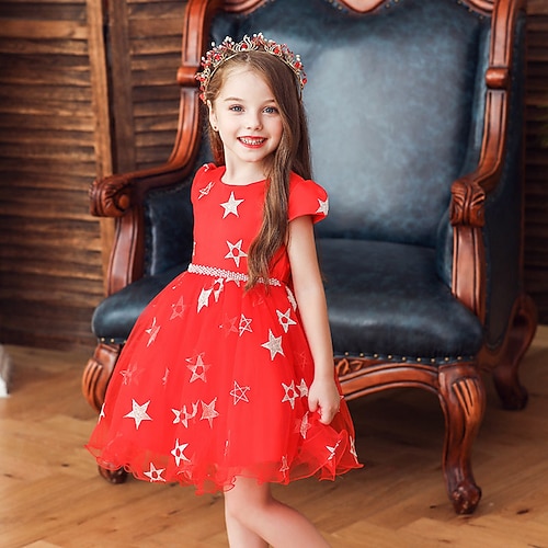 Abito da damigella d'onore bambina Ragazze Abito formale Abiti da sposa Feste Matrimonio Formale Adorabile Principessa Patchwork Rete Stella Manica Corta Girocollo Nero Rosa Dai 4 anni in su