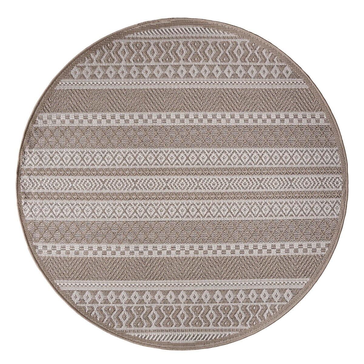 KADIMA DESIGN Teppich Kurzflor Streifen Boho Wohnzimmer schmutzabweisend Beige Rund 120D | 100% Polypropylen, Rücken aus Polypropylen | pflegeleicht