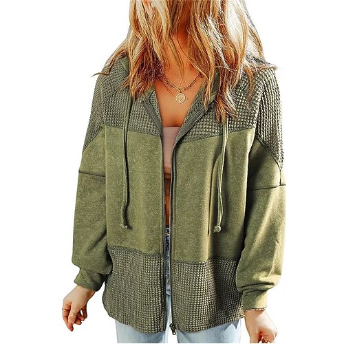 Per donna Giacca Caldo Confortevole Cerniera Tasca Moda All'aperto Blocco di colori Uscire Weekend Cerniera Regolare Con Cappuccio Vestibilità regolare Manica Lunga Capispalla Marrone Verde Cachi