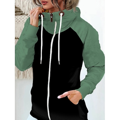 Per donna Giacca con Cappuccio Confortevole Traspirante Cerniera Tasca Casual Blocco di colori Vacanza Streetwear Casuale Abbigliamento quotidiano Cerniera Regolare Con Cappuccio Vestibilità regolare