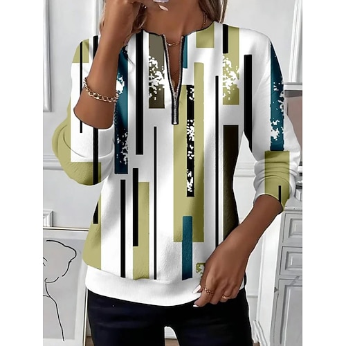Per donna Felpa Pullover Felpe con cerniera Grafico Geometrico Blocco di colori Moda Casual Manica Lunga Girocollo Top Regolari Streetwear Abbigliamento Quotidiano Cerniera Stampato Verde chiaro