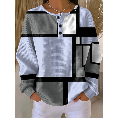 Per donna Felpe con cappuccio Grafico Geometrico Blocco di colori Moda Casual Stampa Manica Lunga Girocollo Top Regolari Casuale Streetwear Bottoni Blu Rosa Viola Verde Autunno Inverno