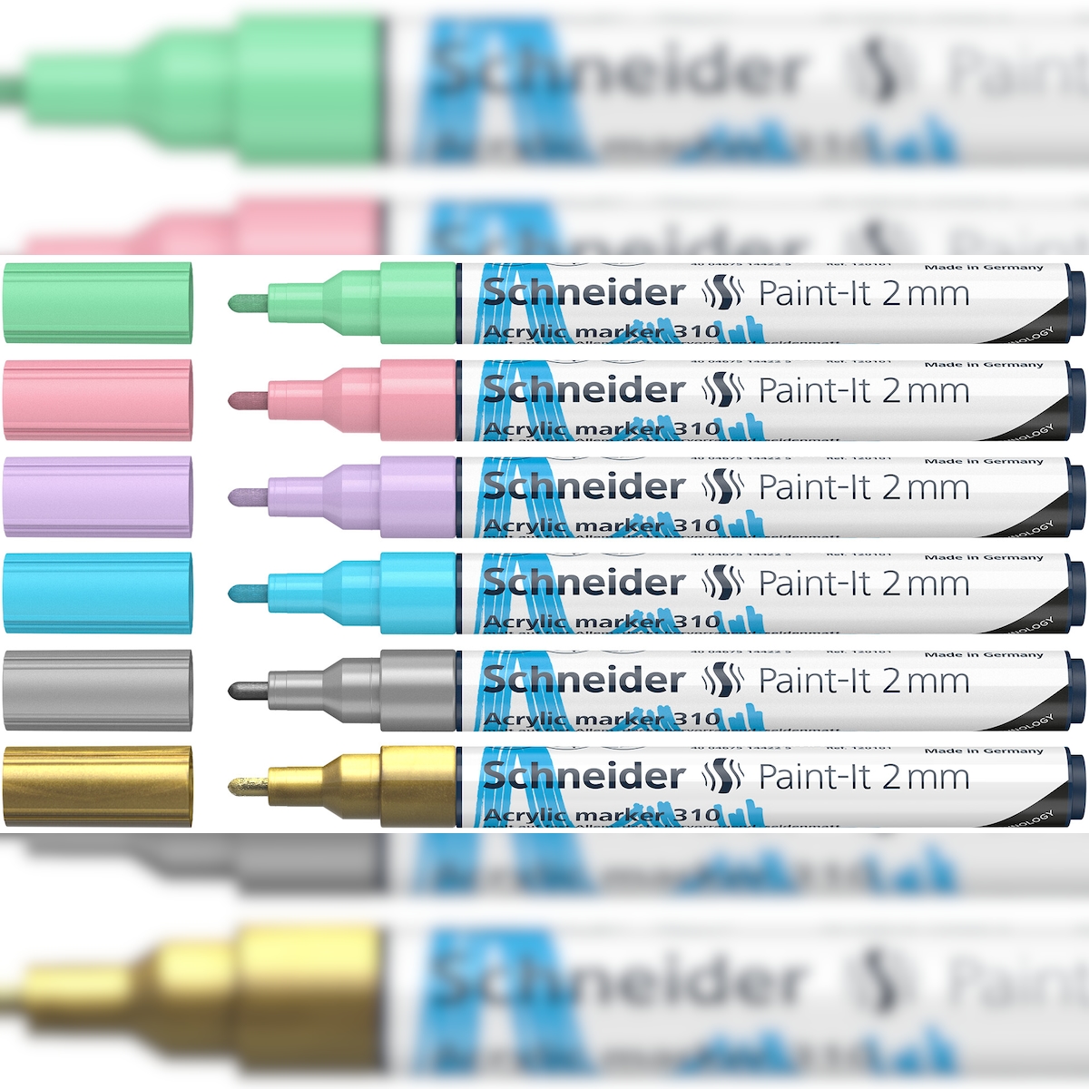 SCHNEIDER Jewelbox 6x Paint IT 310 2 mm gold, silber, hellblau, flieder, rosa, pastellgrün