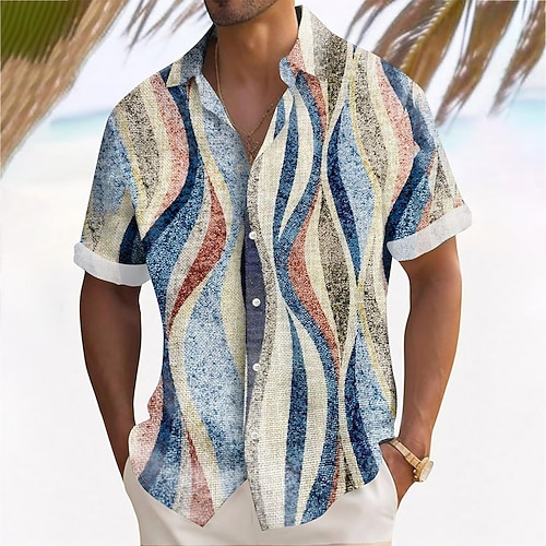 Per uomo Geometrico Onde Camicia Camicia Estiva Camicia con Bottoni Manica Corta Moda Casual All'aperto Vacanza Abbigliamento Quotidiano Estate Primavera Collo ripiegato Stampa 3D camicie con colletto