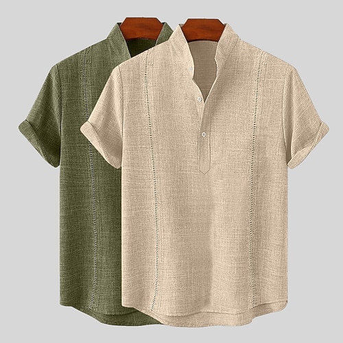 Per uomo Camicia camicia di lino Camicia estiva Abbigliamento mare Camicia con bottoni Liscio Informale Giornaliero Bianco Blu Verde Cachi Manica corta Colletto Estate Primavera Abbigliamento