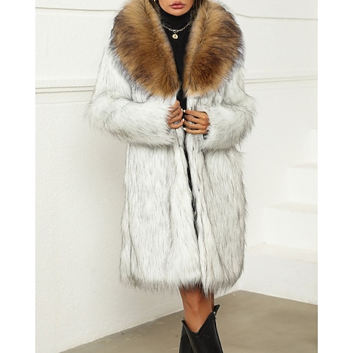 Per donna Cappotto Cappotto in Pelliccia Sintetica Caldo Confortevole Blocco di colore Pellicce e pelli Elegante Casual Semplice Vacanza Streetwear Casuale Abbigliamento quotidiano Lungo Collo