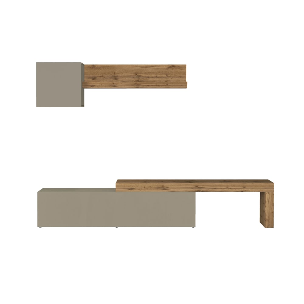 Parete Attrezzata Effetto Legno Tortora Opaco e Rovere 190/350x40 cm