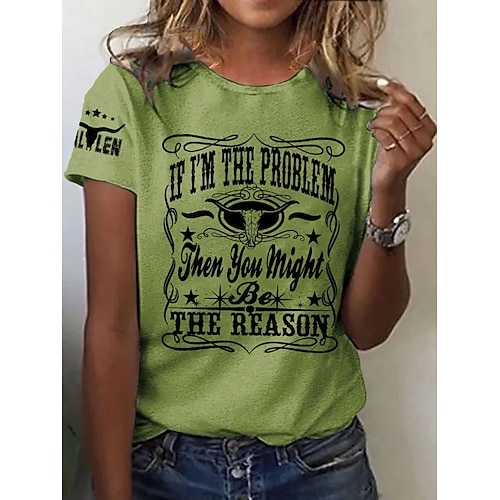 Per donna Maglietta Grafico Lettera Vintage Elegante Classico Manica Corta Girocollo Top Regolari Quotidiano Stampato Nero Bianco Blu Verde Grigio Estate Primavera