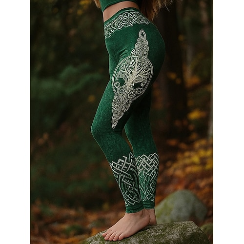 Per donna Leggings Vacanza Vintage Stile Etnico Lunghezza intera Vita Alta Grafico Astratto Stampa 3D Asciugatura Rapida Traspirabilità Morbido Elasticizzato All'aperto Vacanza Streetwear Nero Verde