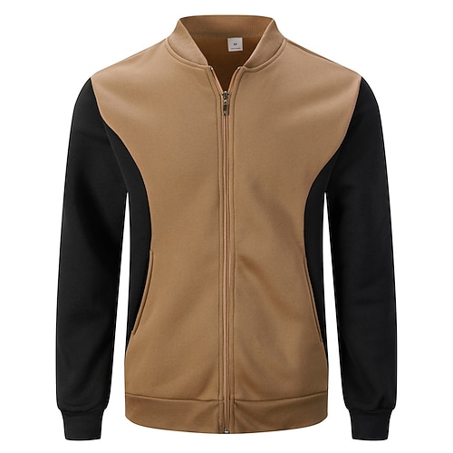 Per uomo Giacca Leggera Giacca Casual Quotidiano All'aperto Tasca Primavera Autunno Blocco di colori Streetwear Elegante Colletto Mao Regolare Nero Cachi Verde militare Blu scuro Grigio Giacca