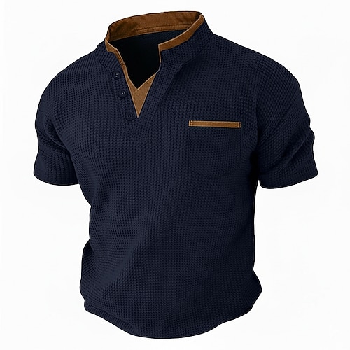 Per uomo Maglietta con bottoni Maglietta Maglia Henley Maglietta a Maglia Waffle Manica Corta Henley Primavera Estate Blocco di colori Moda Designer Essenziale Patchwork Vacanza Streetwear Uscire