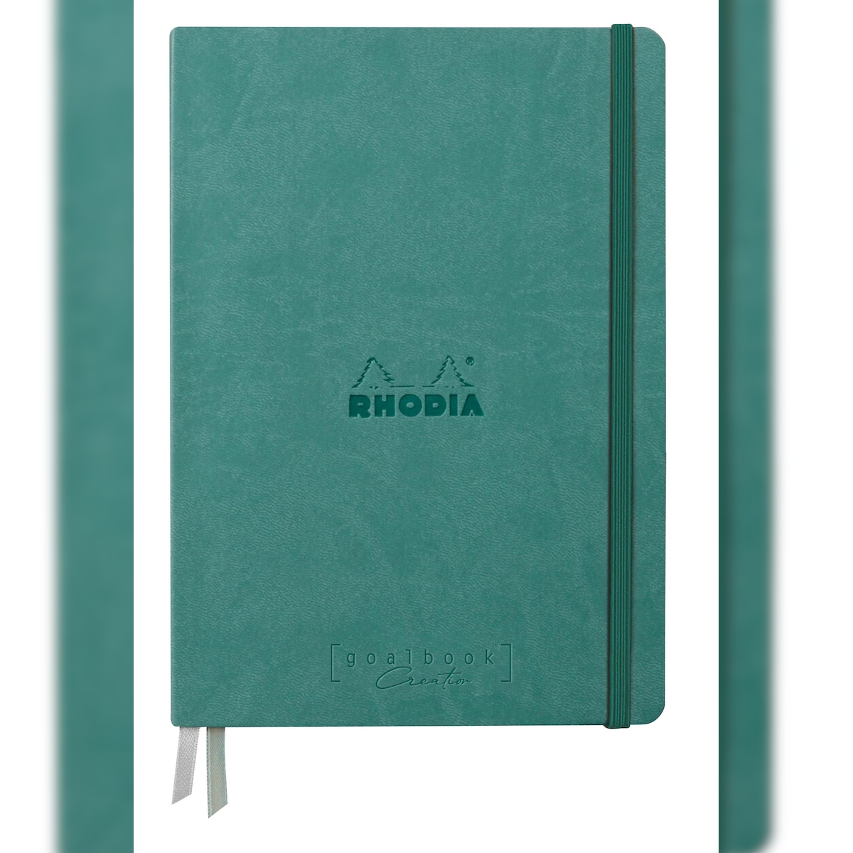 Rhodiarama, Goalbook Creation A5 mit festem Umschlag, 50 Blatt Lavis technique weiß blanko 200g, mit Gummizugverschluss - Wassergrün 194158C