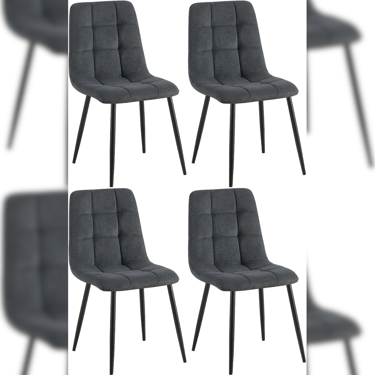 CLP 4er Set Esszimmerstuhl Tilde schwarz/Cord