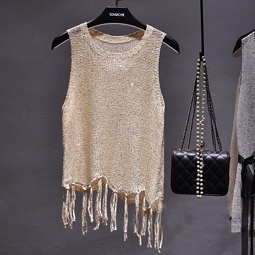 Per donna Blusa Top traforato Canotta a canotta Semplice Elegante Sexy Casual Senza Maniche Girocollo Top Regolari Quotidiano Ferie Uscire Traforato Glitter Nero Cachi Albicocca Estate Primavera