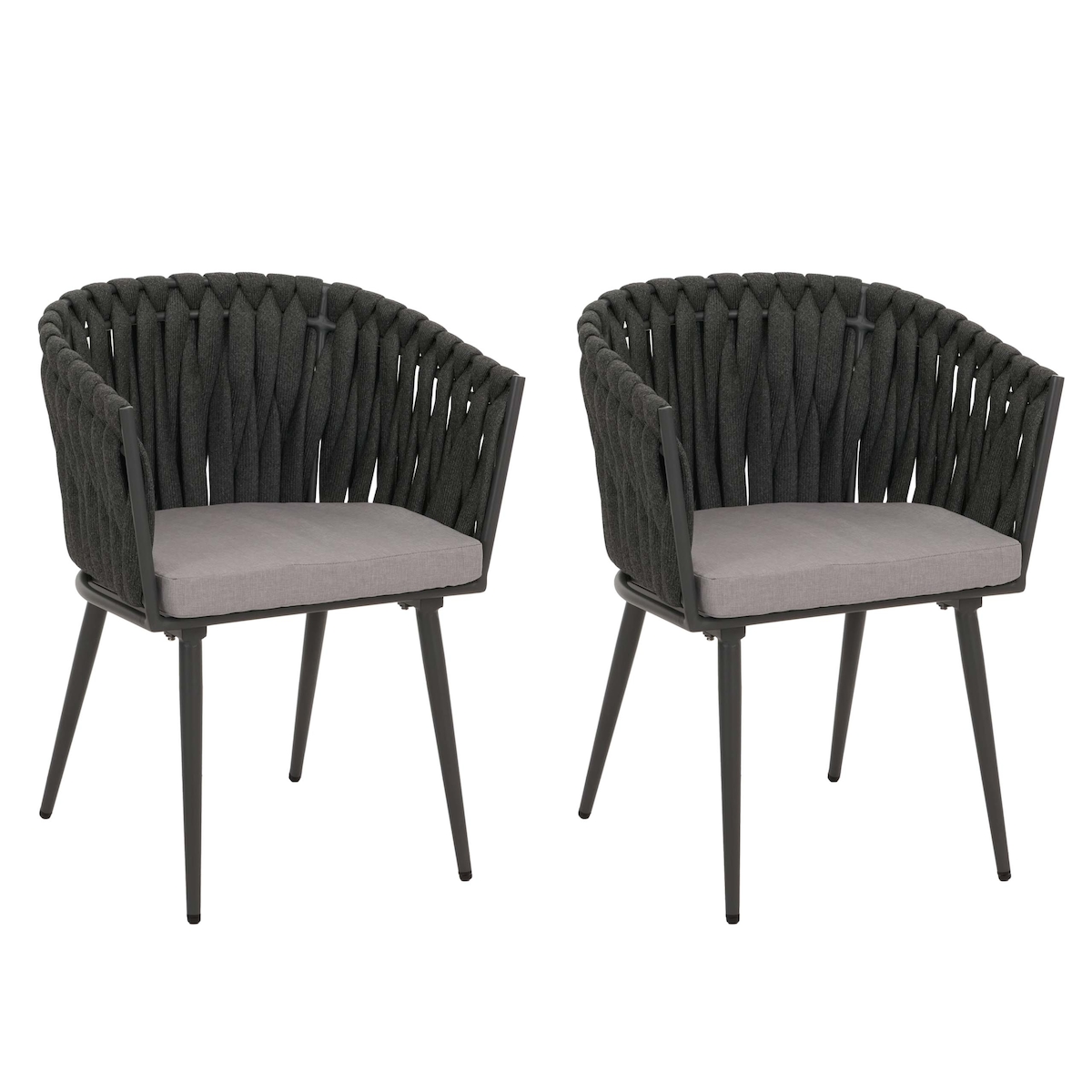 Mendler 2er-Set Aluminium-Gartenstuhl HWC-N38, Outdoor Stuhl Armlehne, Olefin Seilgeflecht Rope ~ anthrazit Kissen hellgrau