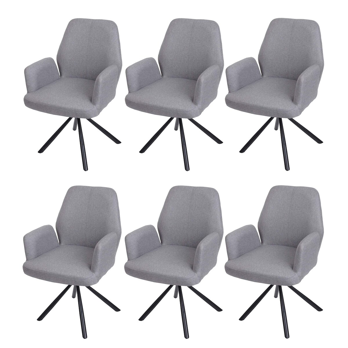 Mendler 6er-Set Esszimmerstuhl HWC-H71, Küchenstuhl Lehnstuhl Stuhl, drehbar Auto-Position Stoff/Textil Stahl ~ hellgrau