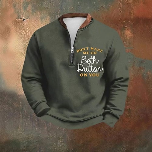 Per uomo Maglia Maglione Felpa con zip corta Nero Marrone Grigio Mezza zip Lettera Casuale Quotidiano Sport Outdoor Vintage Streetwear Essenziale Autunno Inverno Abbigliamento Felpe con cappuccio