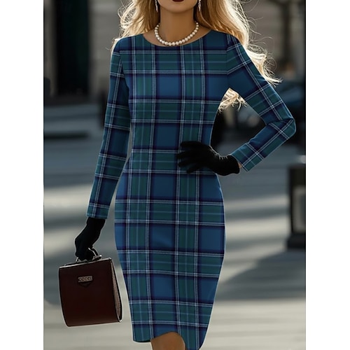 Per donna Mini Abito Vestito T-Shirt Casual Abiti semi formali Quotidiano Ufficio Vestibilità regolare Geometrico Pied-de-poule Manica Lunga Girocollo Blu Marrone scuro Rosa Rosso Primavera Autunno