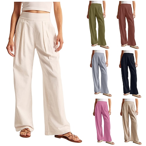 Per donna Pantaloni in cotone e lino Gamba larga Chinos Vacanza Streetwear Essenziale Lunghezza intera Vita media Tinta unica Tasca Elastico in vita Confortevole Traspirante Micro-elastico Quotidiano
