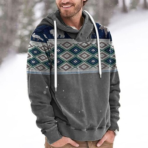 Per uomo Geometrico Stampa Felpa con Cappuccio Felpe con cappuccio Felpa Streetwear Cool Designer Casual Manica Lunga Con Cappuccio Casuale Uscire Verde chiaro Verde militare Grigio Tasca Inverno
