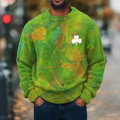 San Patrizio Per uomo Trifoglio Maglione Maglieria Girocollo Casual Quotidiano Streetwear Lavoro a maglia Tenere al caldo Manica Lunga Primavera Autunno Inverno verde 1# Verde 2#