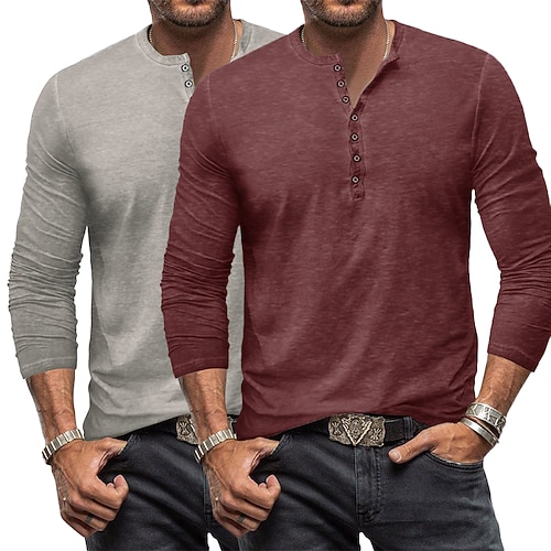 Per uomo Maglia Henley Camicia 100% cotone lavaggio acido Maglietta Manica Lunga Vintage Retrò Vintage Casual Stile Vintage Lavato Henley Casuale Primavera Autunno Tutte le stagioni Marrone scuro