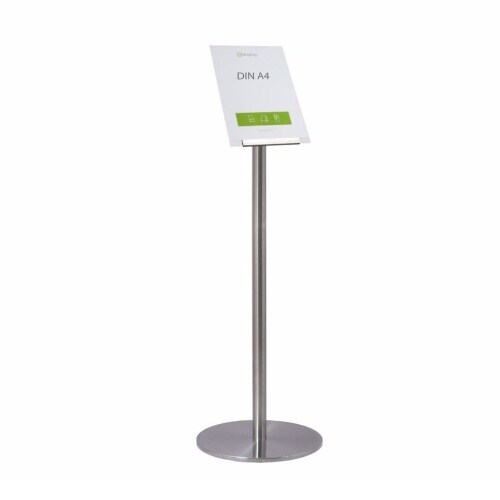 Edelstahl-Infoständer-System »Q« mit Plakattasche für DIN A4 schräg