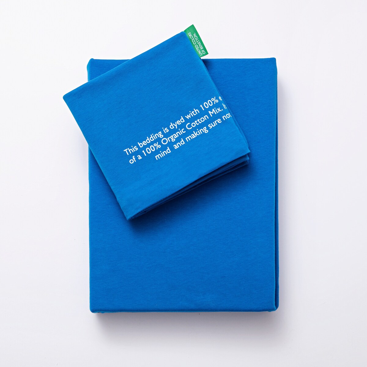 Benetton - 2-teiliges Bettwäscheset (Bettbezug 135 x 200 cm + Kissenbezug 80 x 80 cm), 140 g/m², 100 % Baumwolle, Blau vereint in Grün