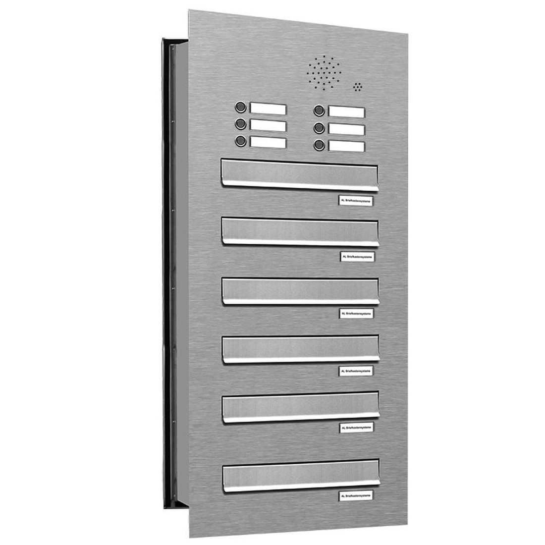 AL Briefkastensysteme 6 Fächer Premium Edelstahl Durchwurf Briefkasten Anlage mit Klingeln, Post A4, robust, wetterfest, Artikelnummer: 132V6DV1KS