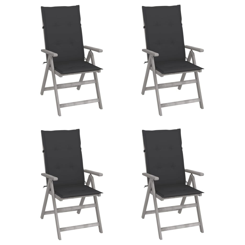 vidaXL 4x Akazienholz Massiv Gartenstuhl Verstellbar mit Auflagen Hochlehner Holzstuhl Gartenstühle Gartensessel Gartenmöbel Stuhl Stühle Outdoor